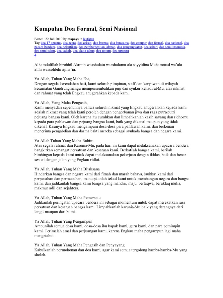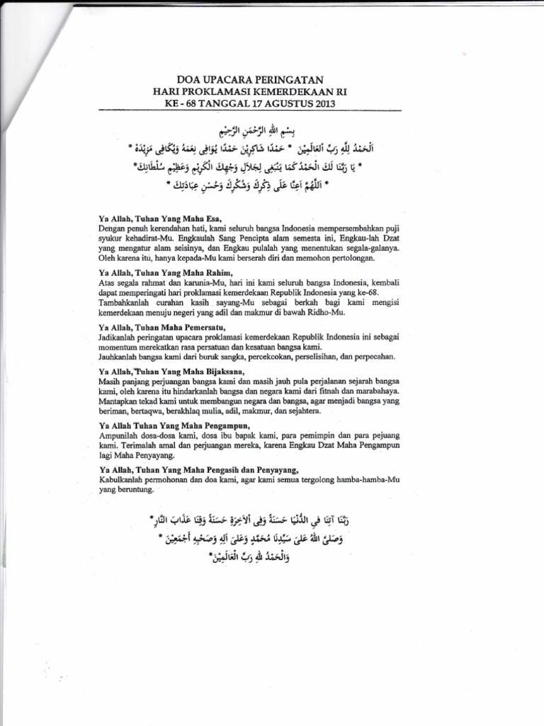 Contoh Naskah Doa Upacara Peringatan Hut Kemerdekan Ri Ke 73 Tahun 2018