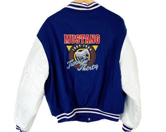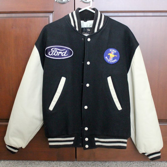Ford Mustang Jacket Coat Letterman Style 1980s Golden Fleece Black Mens Jacket Size Large With Patches