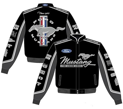 Jh Design Ford Mustang Jacket Twill Collage Racing Style Jacket Black