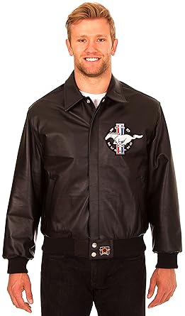 Amazon Com Ford Mustang Men S Black Leather Bomber Jacket With