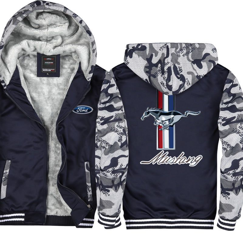 Ford Mustang Jacket Camouflage Jacket 2019 Winter Thicken Fleece Zipper Casual Cardigan Coat Super Warm Cashmere Hoodie Plus Size