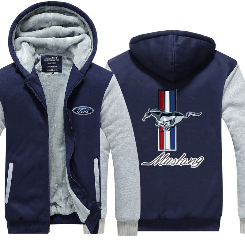 Ford Mustang Hoodies 2019 Coat Winter Thicken Fleece Cotton Zipper Casual Jacket Super Warm Sweatshirt Usa Eu Size Plus Size
