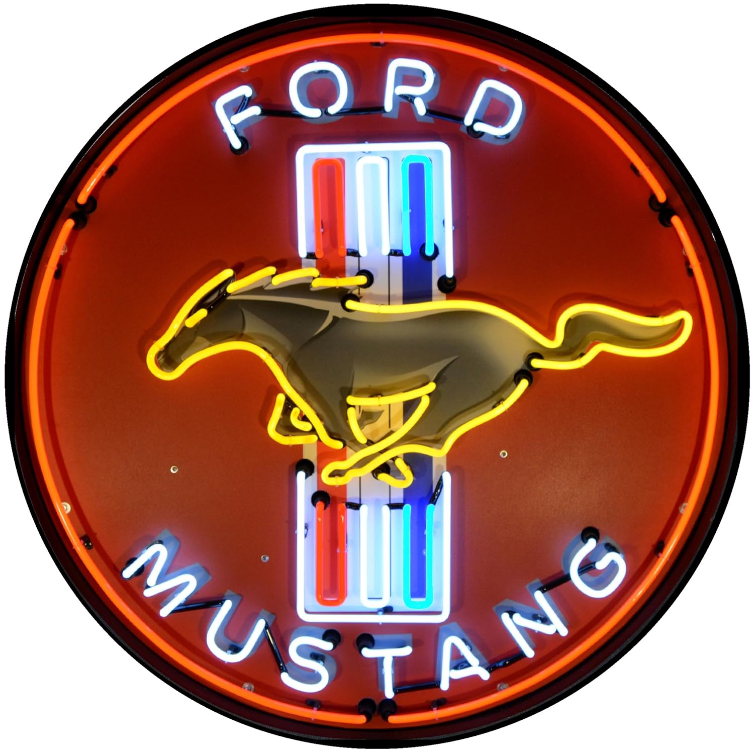 Ford Mustang Neon Sign Large In Steel Can With Backplate