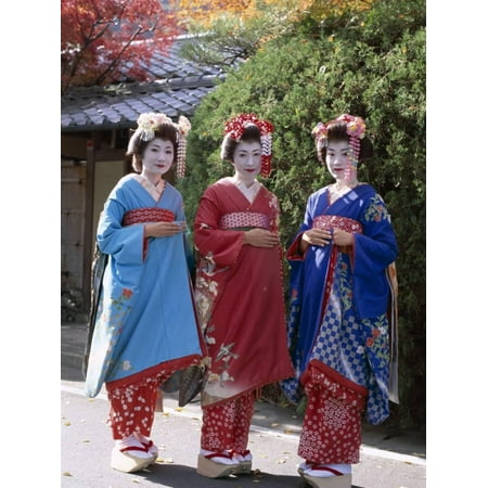 Apprentice Geisha Maiko Women Dressed In Traditional Costume Kimono Kyoto Honshu Japan Print Wall Art