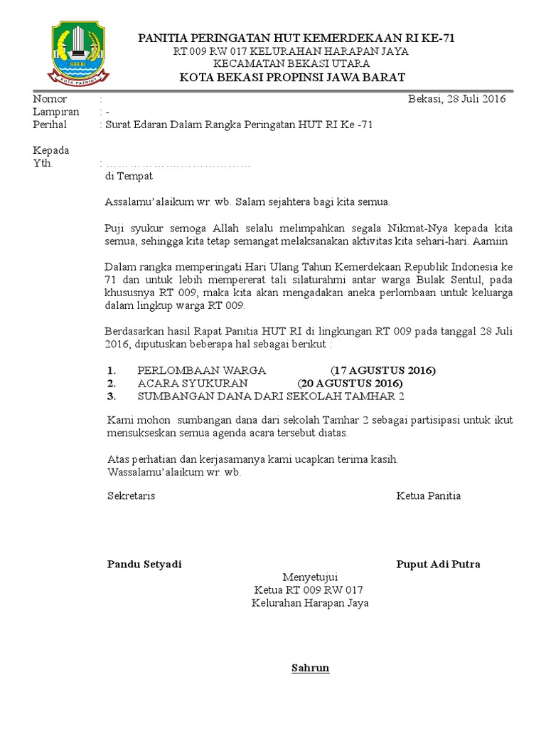 Doc Contoh Surat Edaran Meminta Sumbangan Untuk Acara Hut Ri Heri