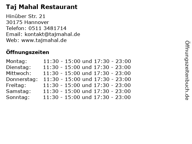 ᐅ Offnungszeiten Taj Mahal Hinuberstr 21 In Hannover