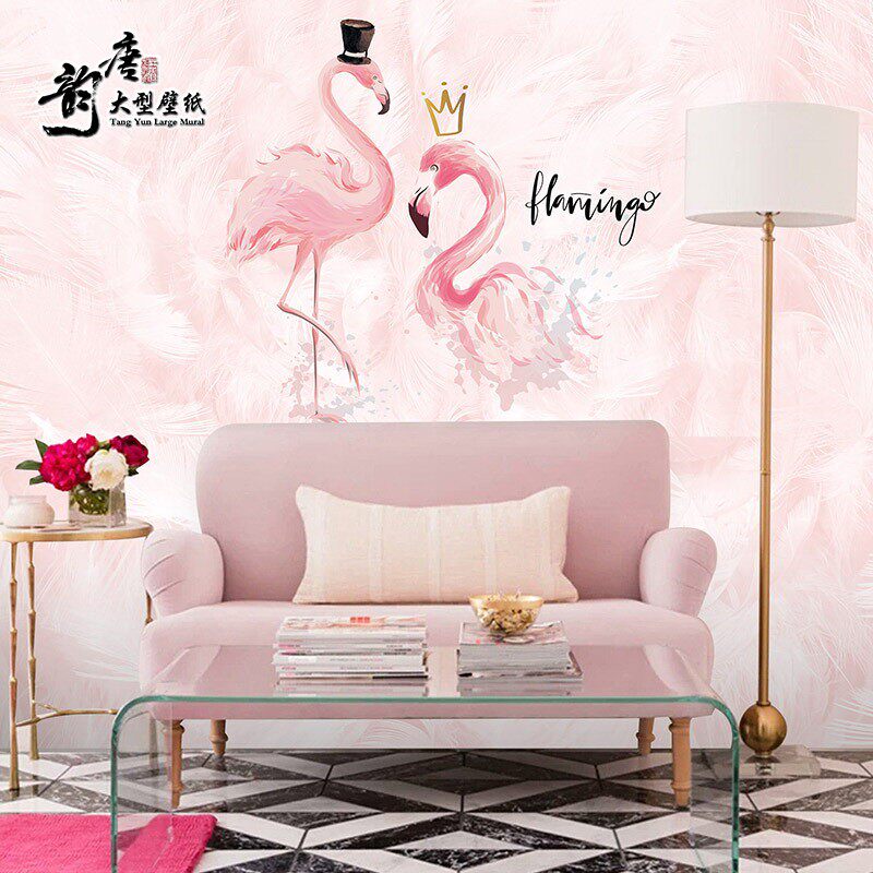 Pink Feather Ins Flamingo Wallpaper Living Room Bedroom Beauty Nail Wedding Clothing Store Net Red Photo Wallpaper