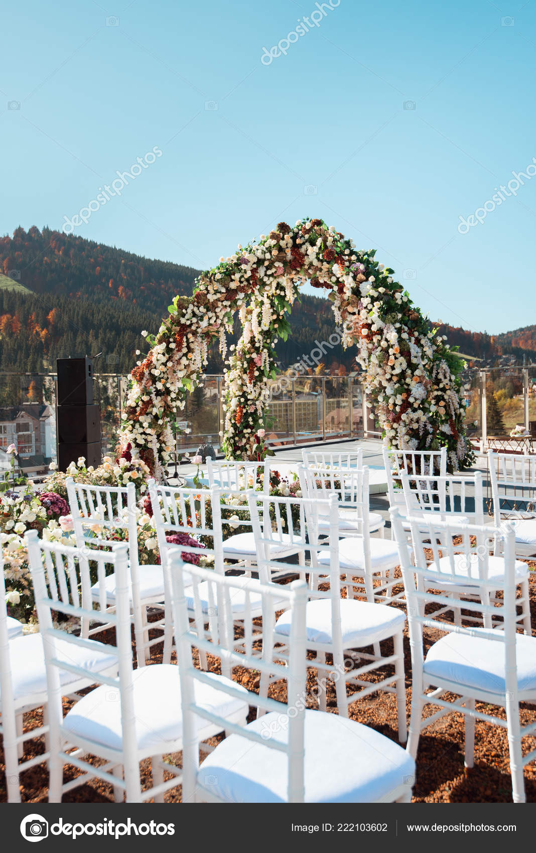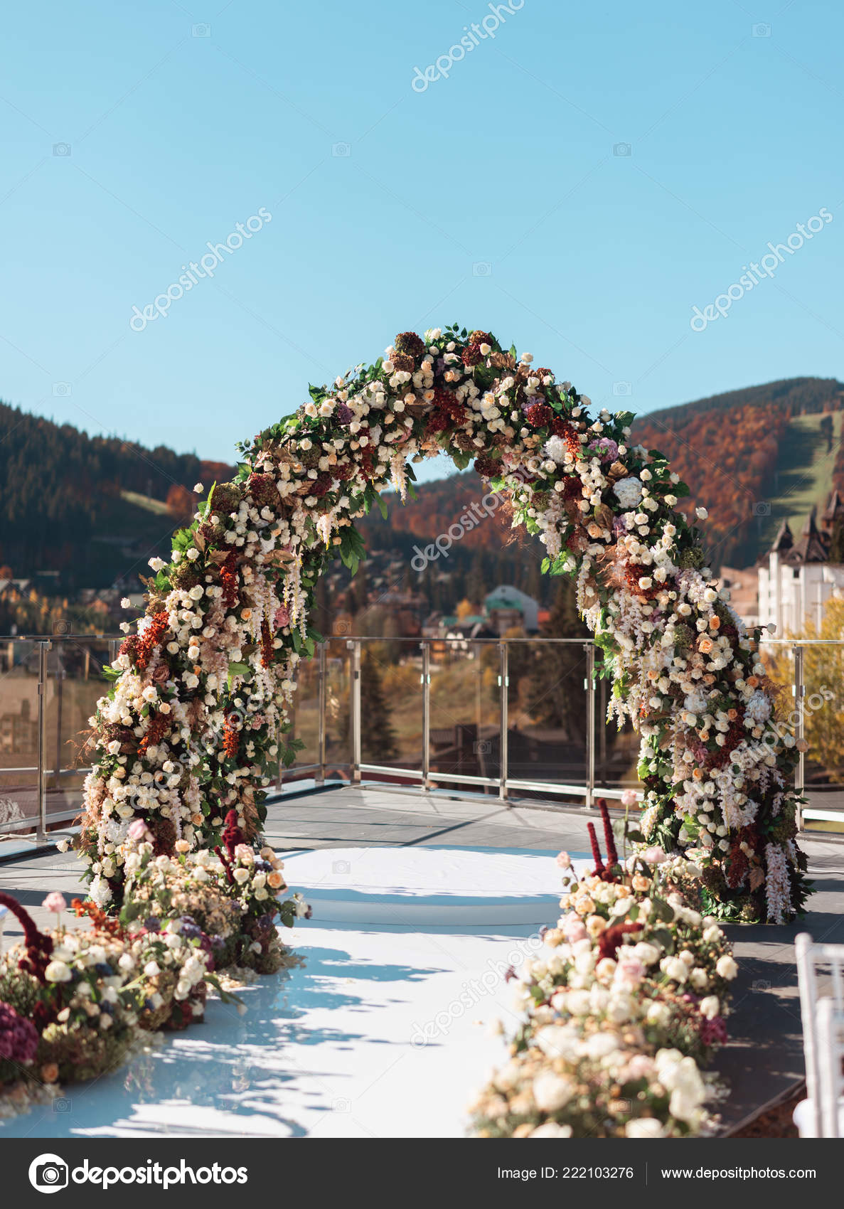 Herbst Hochzeitsdekoration Den Bergen Moderne Hochzeit Stockfoto